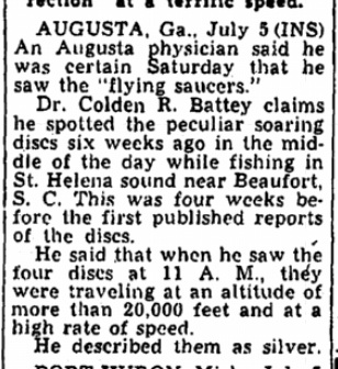 Dr. Battey's report of the sighting did not appear in