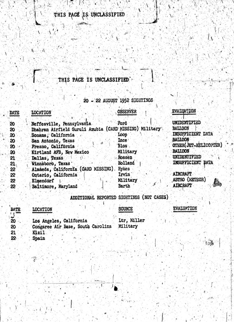Dan Wilson: This case is listed on the Project Blue Book Master Index as an Additional Reported Sighting (Not Cases). The source is listed as Military. Detailed
