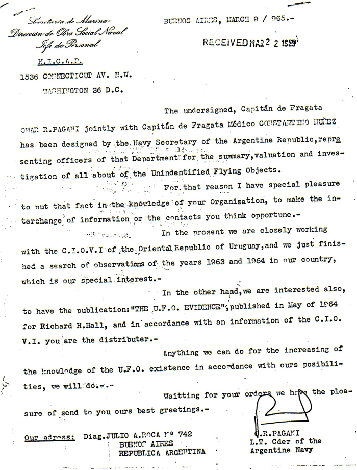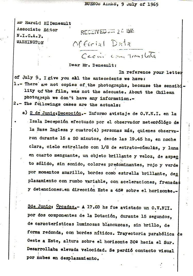 Four page letter to Harold Denealt of NICAP from Lt. Commander
