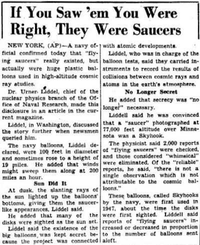 SKYHOOK BALLOONS PUBLICLY REVEALED, 1951? This article was published in