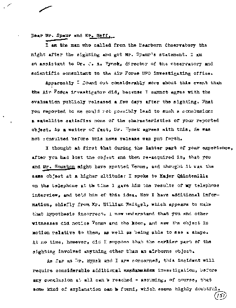 As far as Dr. Hynek and I are concerned, this incident will require