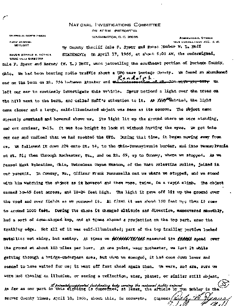 of Portage County, Ohio. We had been hearing radio traffic about
