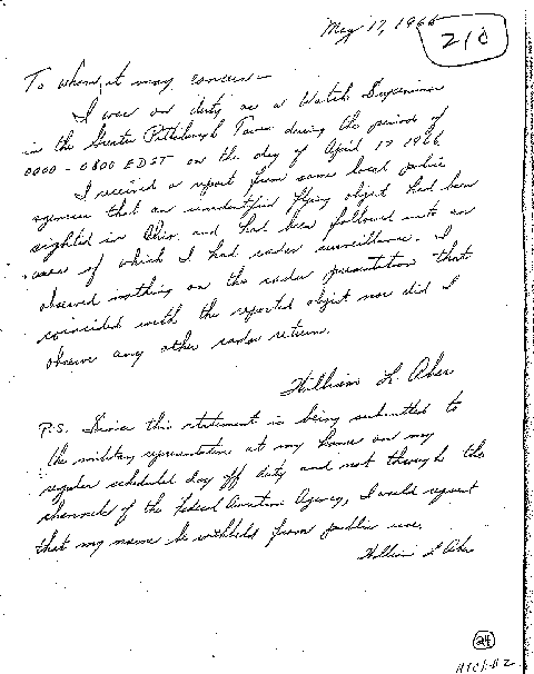 I was on duty as a Watch supervisor in the Greater Pittsburgh Tower