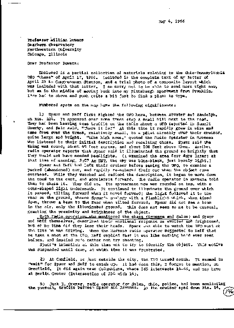 UFO "chase" of April 17, 1966. Included is the complete text of my letter