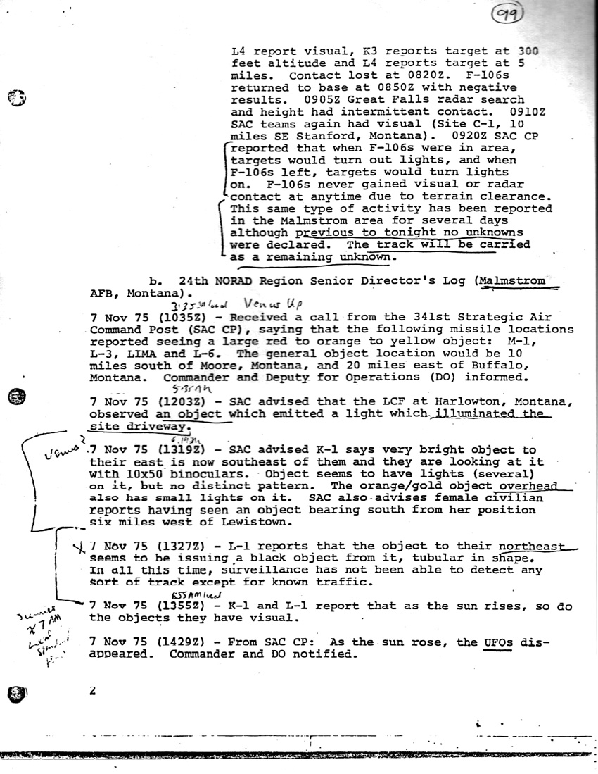 8 Nov 75 (0905Z) - From SAC CP: L-sites had fighters and objects;